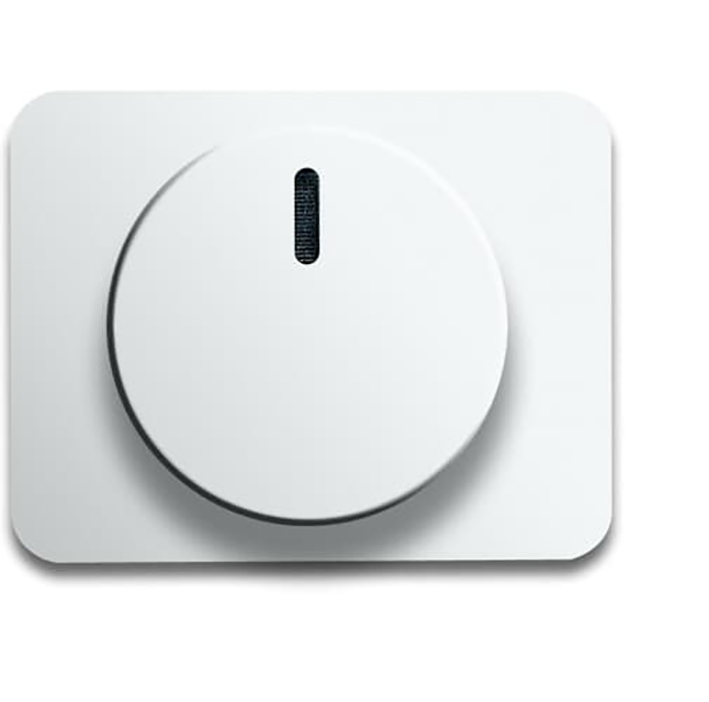 Centraalplaat met draaiknop, bevestigingsmoer en glimlampje voor Busch-Dimmer® 2112 U-101/2116(/11) U/ 2117(/11) U/2247 U/2250 U/6513 U-102/6517 U-10x/6519 U/6520 U/6523 U(10x) /6591 U-10x en 6592 U, a-studiowit mat. |