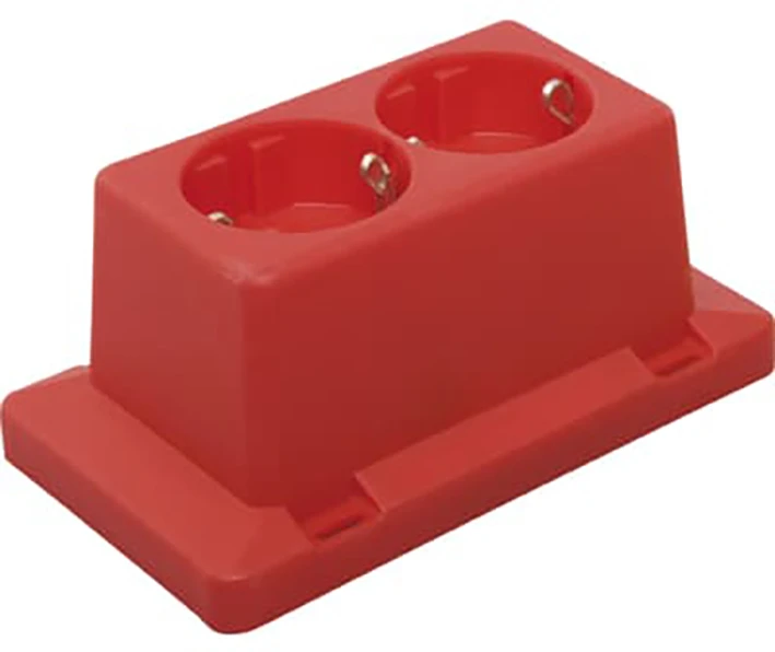 Rood montagedeksel met geïntegreerde dubbele wandcontactdoos met beschermingscontact voor 3611, incl. bedrading. |