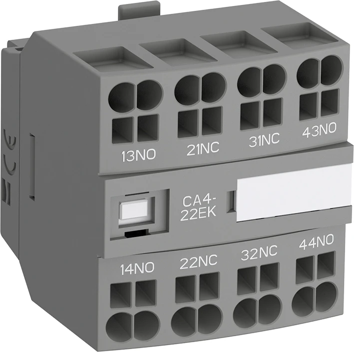 CA4-13MK is een 4-polig frontgemonteerd hulpcontactblok, voorzien van Push-in Spring-klemmen. De uitvoering CA4-..M biedt een klemindeling die overeenkomt met de markering van 3-polige AF(C)09..16(Z)(B)-30-10 contactoren. CA4-13MK is verkrijgbaar met 1 maak- (N.O.) en 3 verbreekcontacten (N.C.), onvertraagd, voor standaard industriële omgevingen. Met de Push-in Spring-klemmen is één druk voldoende voor een snellere installatie dan ooit, eenvoudigere bedrading dan ooit en een even betrouwbare verbinding als altijd. |