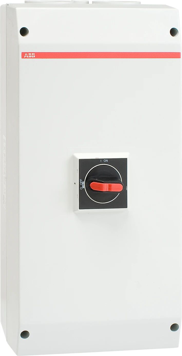 Lastscheider Enclosed Switches EMC WERKSCHAKELAAR, 3P 45kW, 2 M50 + M16, 1NO ZWARTE KNOP