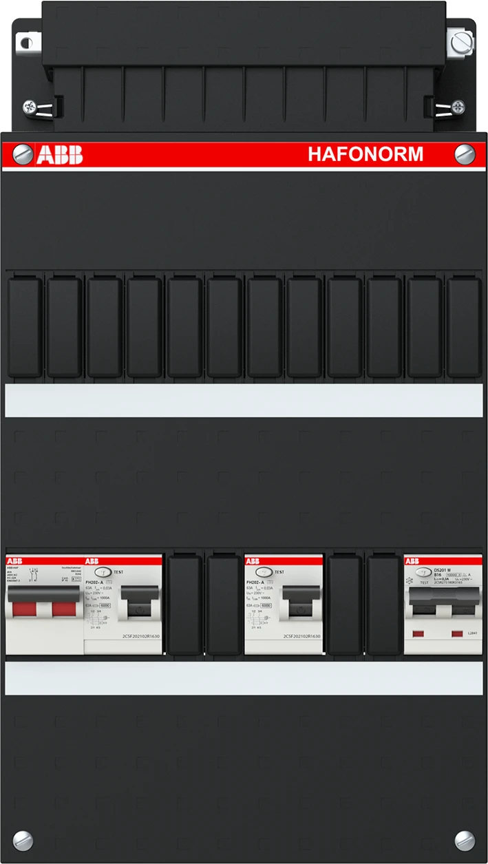 Groepenkast, geassembleerd Hafonorm 1-fase, 1 HS 40A 2P 2x ALS 63A 2P 30 mA 1 aardlek aut. B16 1P+N 300 mA