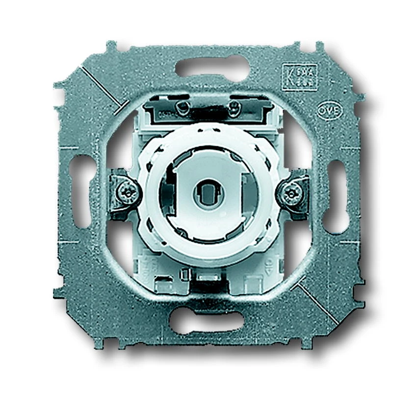 Inbouw drukknop-impulsdrukkersokkel, wissel, zonder N-klem, 10 A, 250 V AC. Zonder impuls-centraalplaat met bedieningsknop.