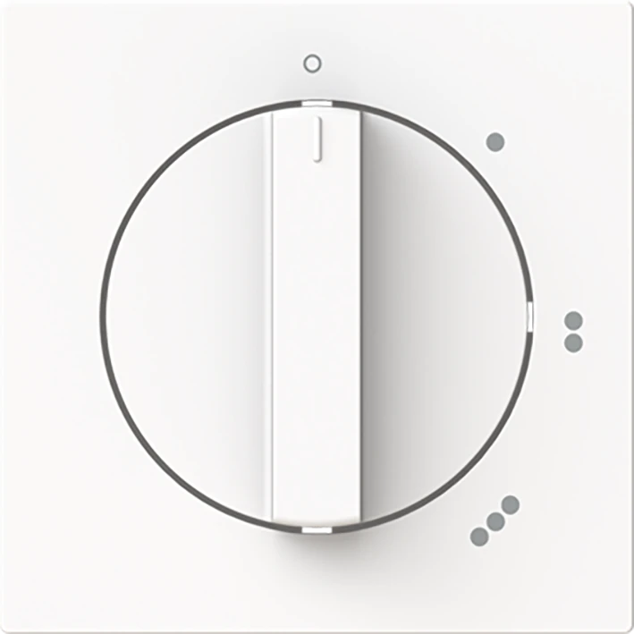 Centraalplaat met draaigreep, met opdruk Als afdekking voor inbouw 3-standen (ventilator)draaischakelaar. Met nulstand. Voor sokkel 2710 U. art-matwit. |