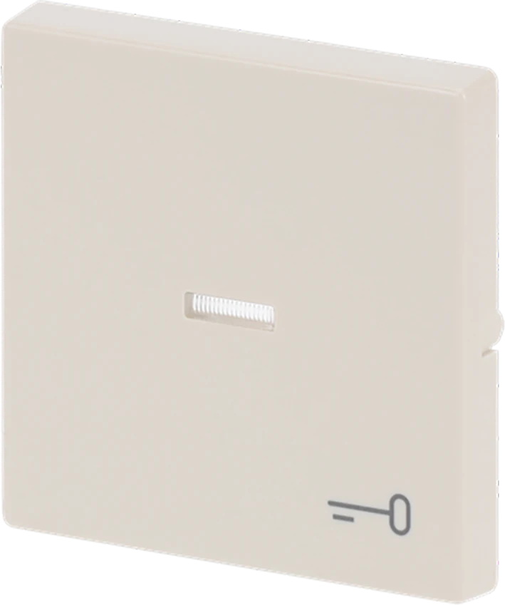 Bedieningswip als afdekking voor inbouwimpulsdrukker, met transparante lens, met symbool "sleutel". |