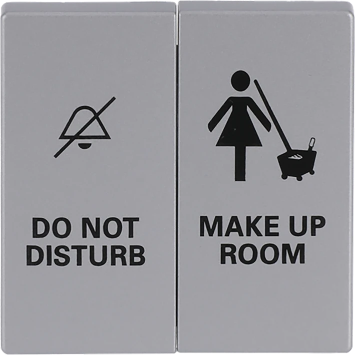 Bedieningswippen voor inbouwserieschakelaar, wissel/wissel-schakelaar en dubbele impulsdrukker, met opdruk "DO NOT DISTURB / MAKE UP ROOM", f-aluzilver. |