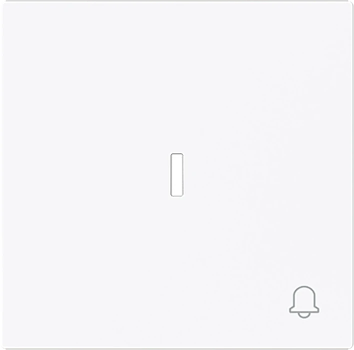 Bedieningswip met opdruk met kleine transparante lens met symbool >Bel<. Als afdekking voor inbouwimpulsdrukker. art-wit. |