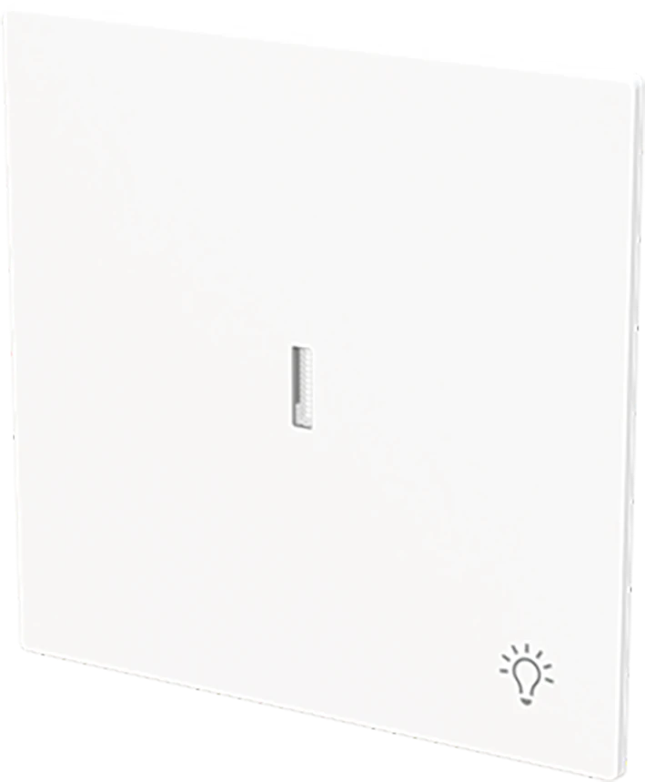Bedieningswip met opdruk met kleine transparante lens met symbool >Licht<. Als afdekking voor inbouwwisselschakelaar, kruisschakelaar, impulsdrukker en wisselcontroleschakelaar. art-matwit. |