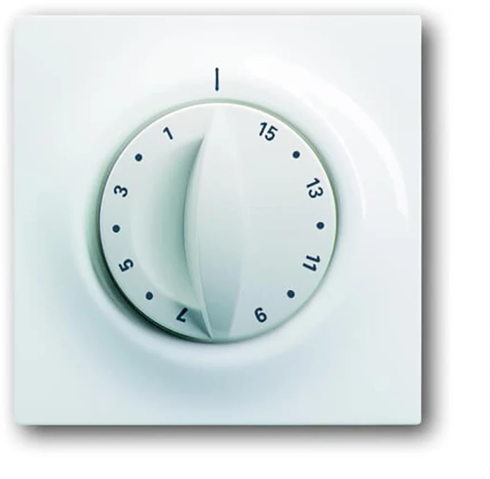 Centraalplaat voor inbouwtijdschakelkloksokkel 1070 U, met draaigreep, 15 minuten, i-alpinwit.