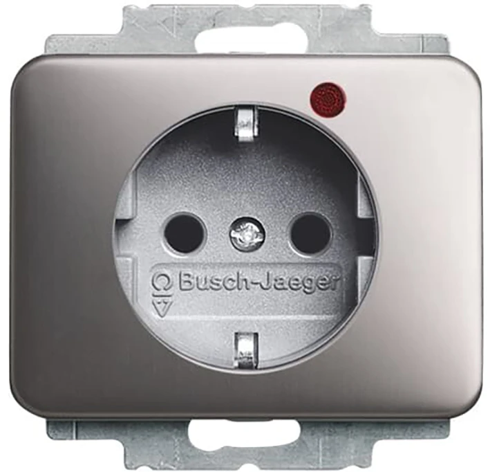 Inbouw Busch-Protector® wandcontactdoos met randaarde, met overspanningsbeveiliging, met geïntegreerde LED en extern meldcontact, a-platin.