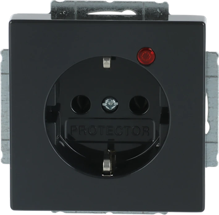 Inbouw Busch-Protector® wandcontactdoos met randaarde, met overspanningsbeveiliging, met geïntegreerde LED en extern meldcontact, f-antraciet. |