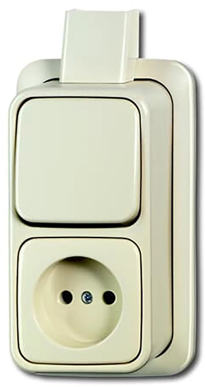 Opbouw combinatie wandcontactdoos en wipschakelaar, met adapter voor platte buis K/P-25, met montageplaat 2609/2 APJ-COMB, wissel, AP creme.