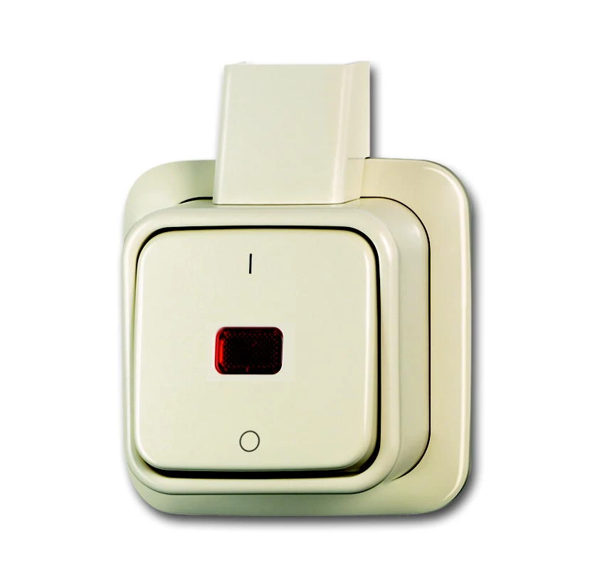 Opbouw wipcontroleschakelaar, 2-polig, met adapter voor platte buis K/P-25, met montageplaat 2609 APJ, 10 AX, 250 V AC, AP creme.