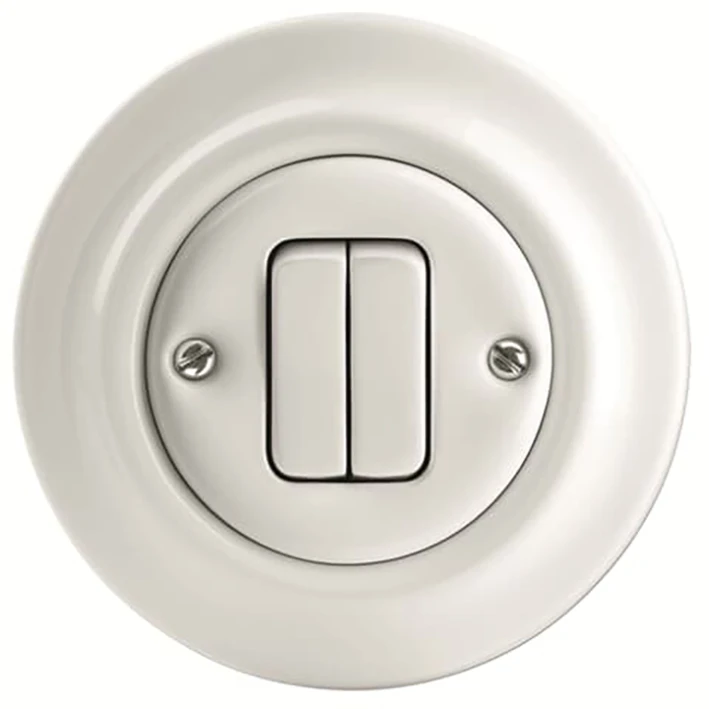 Inbouw wipschakelaarsokkel, serie, 10 AX, 250 V AC. Compleet apparaat: sokkel, centraalplaat en afdekraam. Materiaal: porselein, decento, studiowit.