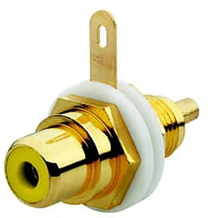 Cinch (RCA, phono, tulp) chassisdeel female, voor montage in communicatie-draagringen, geel. |