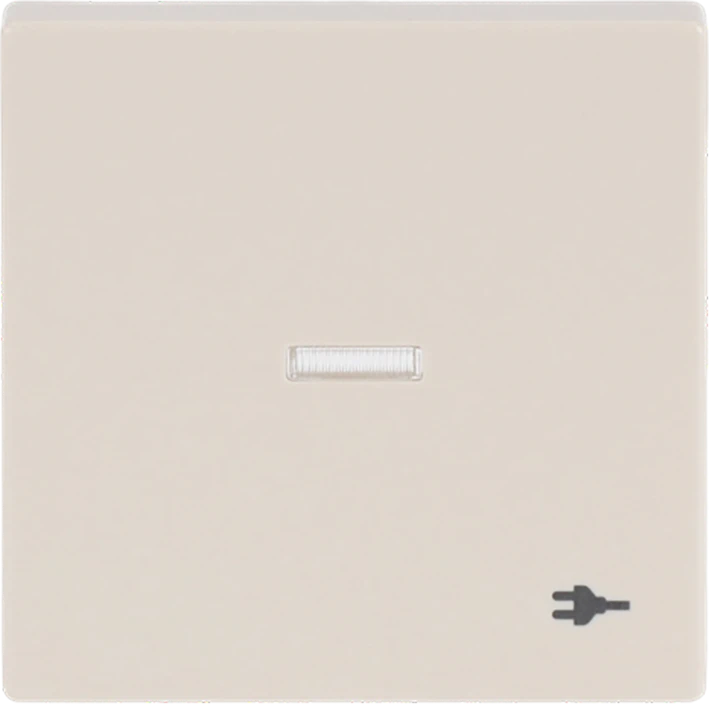 Bedieningswip als afdekking voor inbouwwisselschakelaar, kruisschakelaar, impulsdrukker en wisselcontroleschakelaar, met transparante lens, met symbool "stekker", s-ivoorwit. |