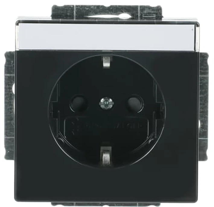 Inbouw wandcontactdoos met randaarde, met verhoogde aanraakbeveiliging, met tekststrook, f-antraciet.