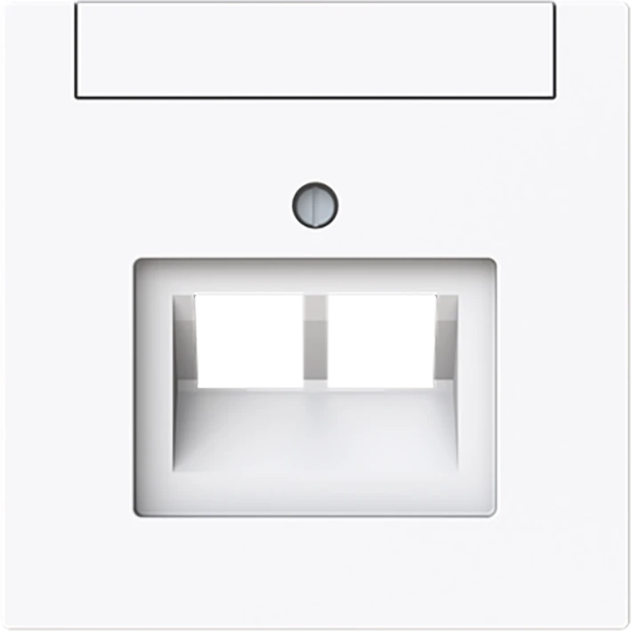 Centraalplaat 2-voudig als afdekking voor UAE-datacontactdozen. Artikelnummer. 0214, 0215 (cat. 3/ISDN), 0217, 0218 (cat. 5e/6 class E datatechniek) en vergelijkbare types van de firma Rutenbeck. Brand-Rex (WAEGV 8/8 EKR/EK). AMP (NETCONNECT 5E). BTR (E-DAT C6, E-DAT-design, UAE-design en IAE-design). Cti (cti-wire 2.8 cat. 6). Telegärtner (AMJ 45, UMJ 45). Met schuine uitvoer. Met tekstveld. Grootte van het tekstveld: 50 x 9 mm. art-wit.