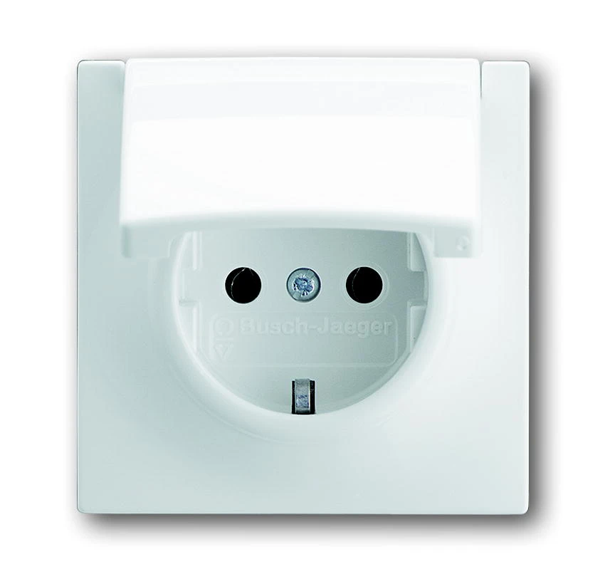 Inbouw wandcontactdoos met randaarde, met klapdeksel, i-alpinwit.