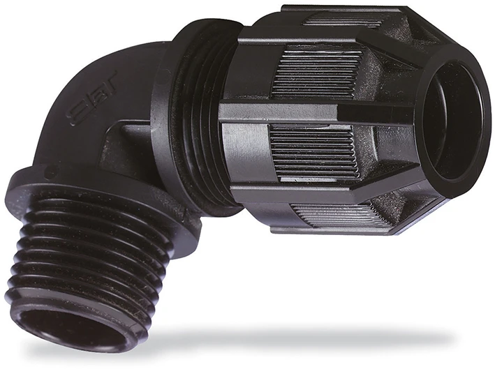 Wartel kabel-/buisinvoer T&B Liquidtight Fittings 90° kunststof kabelwartel voor kabeldiam 3,2 - 9,5mm , NPT 3/4", PA 6.6 IP65, Zwart