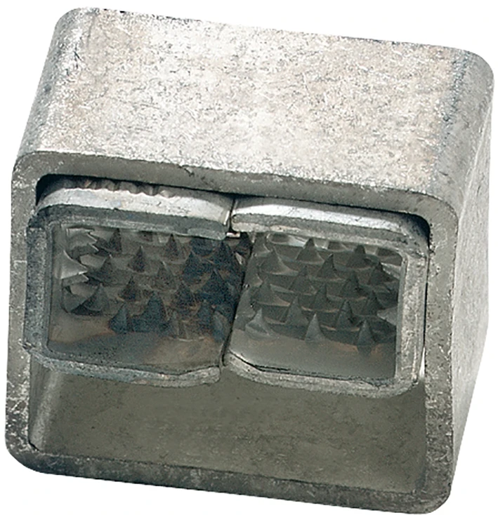 Isolatie-doorborende modulaire connector voor magneetdraad, afstand tussen tanden 0,19 inch, lengte 0,63 inch, breedte 0,63 inch, draadbereik #13 AWG – #5 AWG (20.000 circular mil – 105.000 circular mil), koperlegering, vertind. |