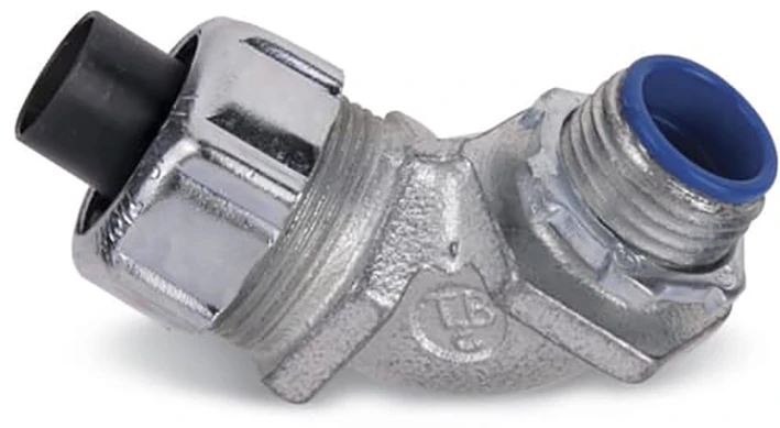 Hulpstuk voor kunststof kabelbeschermslang T&B Liquidtight Fittings Bullet koppeling, 90 Graden, voor EFC/LTC/LTC-GY Slang, Gegalvaniseerd Staal NPT 1/2 Inch