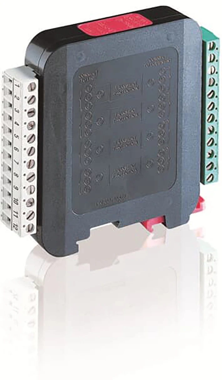 ESP 30Q data-overspanningsbeveiliging voor 8-aderige (4 paren) 30 V-signaallijnen, met ruimtebesparend ontwerp.