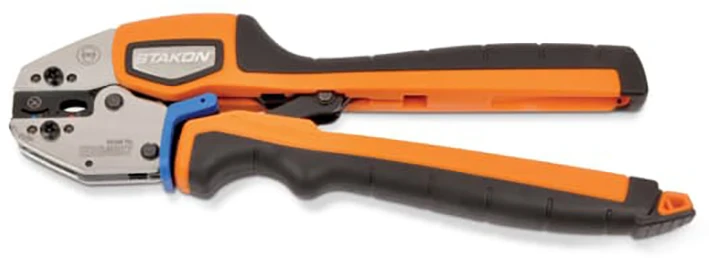 Ergonomisch handgereedschap voor het krimpen van RD- en RE‑geïsoleerde kabelschoenen (uitsluitend buisvormig) |
