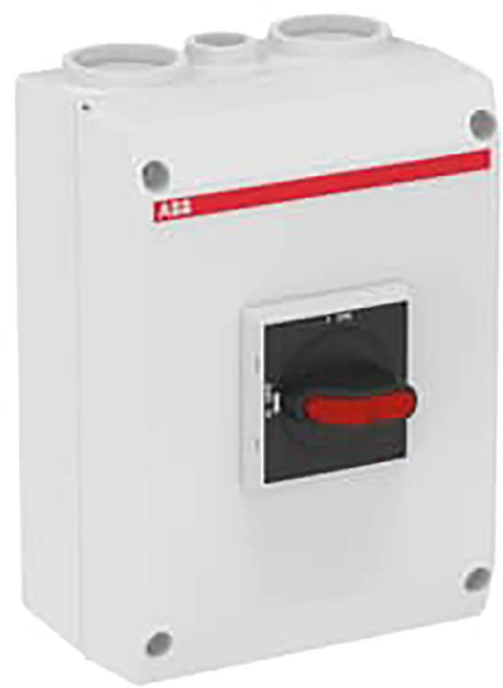 Werkschakelaar in behuizing, 4-polig, 415 V AC-23 45 A, 22 kW. Kunststof behuizing. IP65. Zwarte selectorhendel. Vergrendelde deksel. Overbrugbare vergrendeling. De behuizing in de OTP-serie is een stijve met glasvezel versterkte polycarbonaatbehuizing. De behuizing is UV-bestendig, beschermd tegen waterstralen met lage druk (IP65) en daarmee geschikt voor binnen- en buitentoepassingen. De kabelinvoeren zijn voorzien van schroefdraad en hebben knock-outopeningen voor 2 parallelle kabels en één stuurkabel, zowel aan de boven- als aan de onderzijde. De hendel is vergrendelbaar met hangslot en geschikt voor drie hangsloten. De deksel is vergrendeld. De vergrendeling kan worden overbrugd, bijvoorbeeld voor thermografie e.d. De schakelaar is geschikt voor een 5-draadssysteem en heeft een vaste nulklem en PE-klem. |