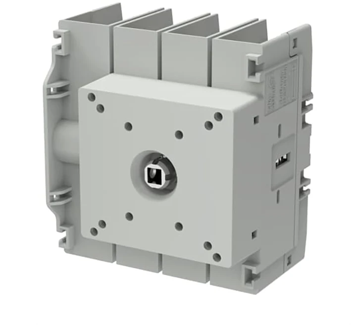 OT Plus-serie werkschakelaars. 4-polige, frontbediende, op de deur gemonteerde werkschakelaar. De werkschakelaar heeft geïntegreerde schroefaansluitingen. Hendel niet inbegrepen.