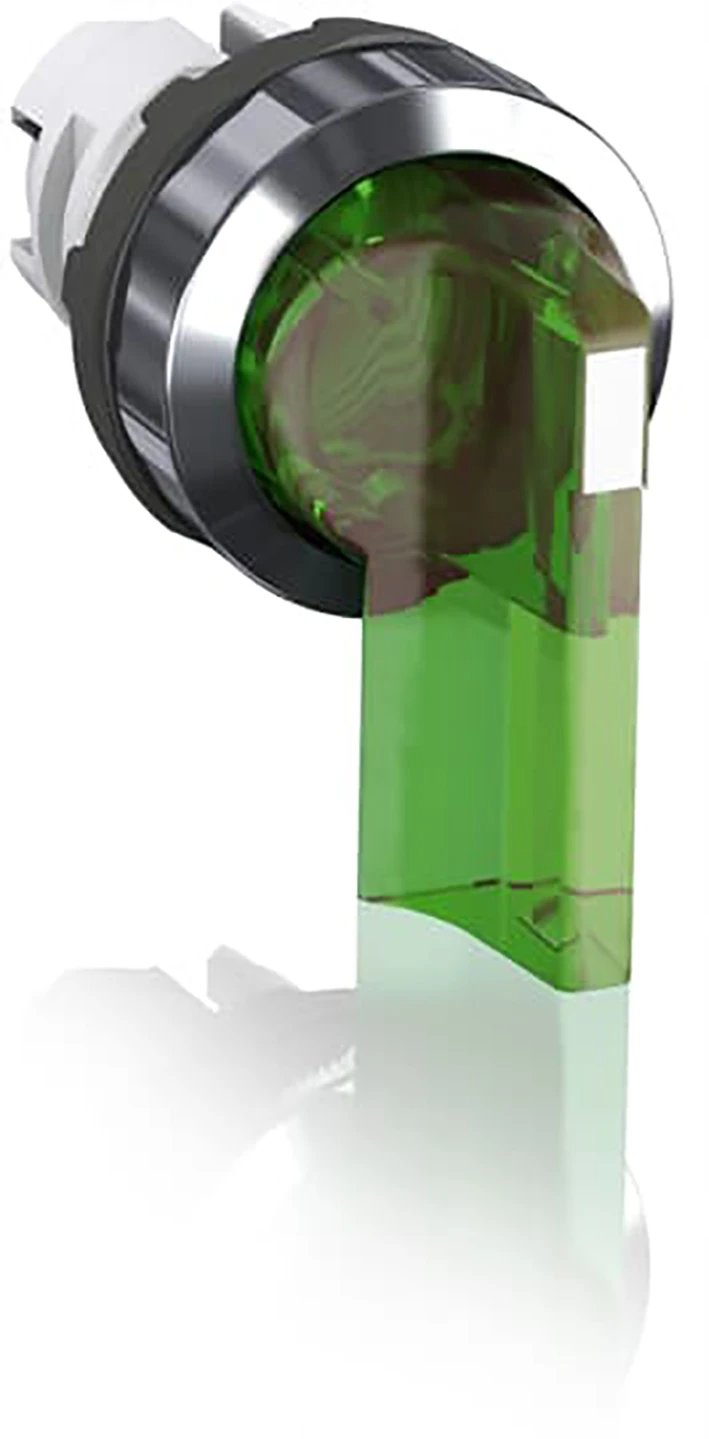 Verlichte keuzeschakelaar, terugverend, lange hendel, 3 standen, groen