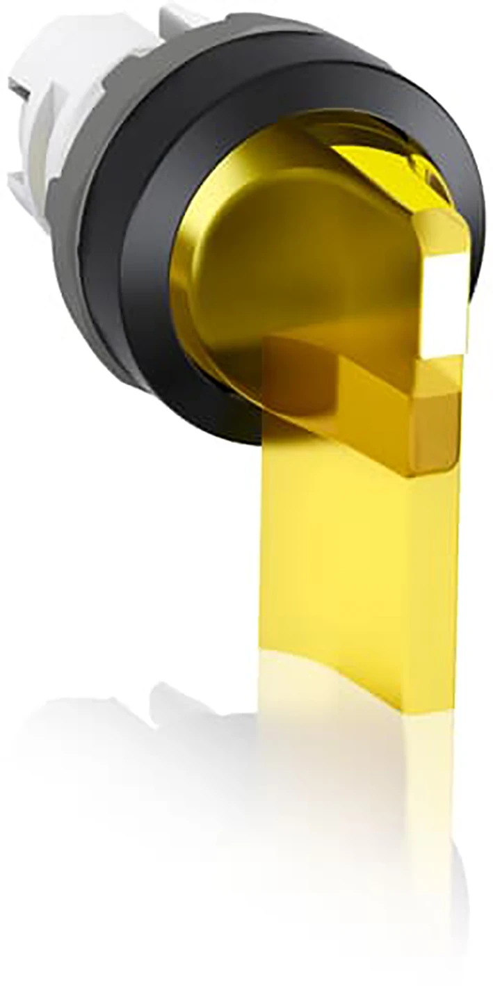 Keuzeschakelaar frontelement Drukknoppen / Modular Verlichte keuzeschakelaar, terugverend, lange hendel, 3 standen, geel