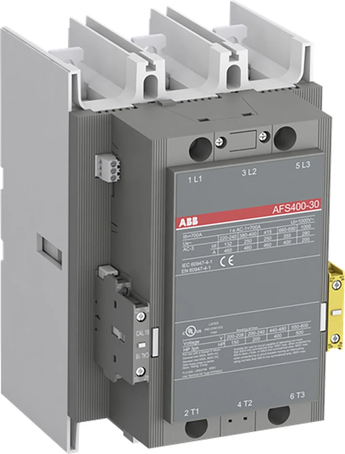 De AFS400-30-12-70 is een 3-polige contactor voor 1000 V (IEC) of 600 V (UL), met voorgemonteerde zijgemonteerde hulpcontactblokken: links 1 (1 N.O + 1 N.C.) en rechts vast 1 (1 N.C.), met Main Circuit Bars-aansluitingen. Geschikt voor het aansturen van motoren tot 200 kW / 400 V AC (AC-3) of 350 hp / 480 V UL, en voor het schakelen van vermogenscircuits tot 600 A (AC-1) of 550 A UL general use. AFS-contactoren kunnen eenvoudig worden geïntegreerd in machinesystemen die voldoen aan de belangrijkste normen EN ISO 13849 en EN 62061 – voor het veilige gebruik van uw machines en apparatuur. Een goed herkenbaar geel low-energy hulpcontactblok borgt de status-terugvoercircuits die vereist zijn in machineveiligheidstoepassingen. Dankzij AF-technologie heeft de contactor een breed stuurspanningsbereik (100–250 V, 50/60 Hz en DC), worden grote variaties in stuurspanning opgevangen, neemt het energieverbruik in de schakelkast af en is betrouwbare werking in instabiele netten gewaarborgd. Bovendien is overspanningsbeveiliging ingebouwd, wat een compacte oplossing biedt. AF-contactoren hebben een blokontwerp en zijn eenvoudig uit te breiden met aanvullende hulpcontactblokken en een breed assortiment accessoires.