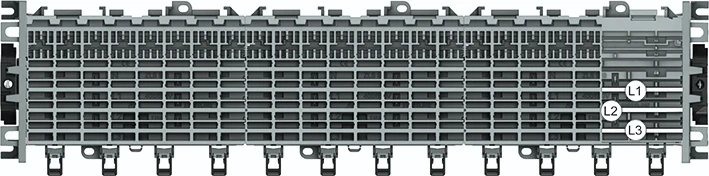 Starterpakket aanraakveilig met 50 modules L1, L2, L3. Het insteeksokkelsysteem SMISSLINE TP is volledig aanraakveilig (IP2XB) in combinatie met het sokkelleindstuk.