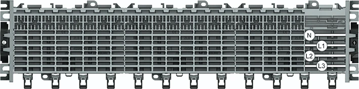 Starterpakket, aanraakveilig, met 66 modules L1, L2, L3, N. Het insteekbare contactdoossysteem SMISSLINE TP is volledig aanraakveilig (IP2XB) in combinatie met het contactdoos-eindstuk. |