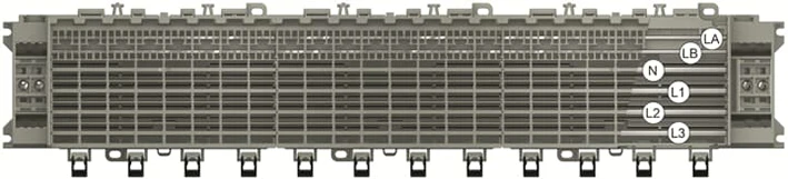 Starterpakket SMISSLINE TP Power Bar System 250 A 3LN LA LB, vingerveilig. Het insteekbare sokkelsysteem is volledig vingerveilig (IP2XB) in combinatie met het sokkeleindstuk. |