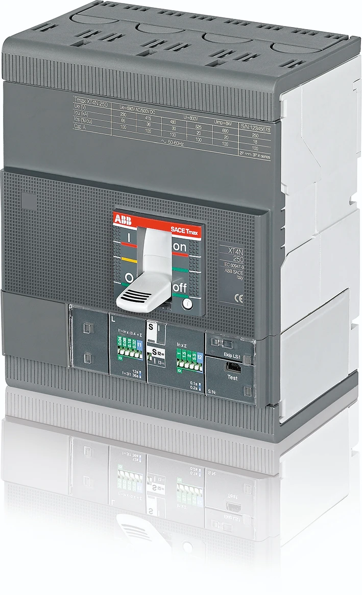 Vermogensschakelaar voor trafo-, generator- en installatiebeveiliging Tmax XT Tmax XT4H 160/R 63 4P vast met vooraansluiting Ekip I microprocessor beveiliging In = 63A Im = 63...630 A