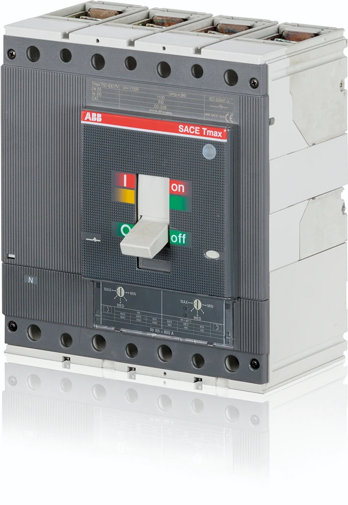 Vermogensautomaat TMAX T5H 400, vaste uitvoering, vierpolig, met vooraansluitingen en thermomagnetische beveiliging TMA R 320, I3=1600...3200 A, volwaardig nulpool. |