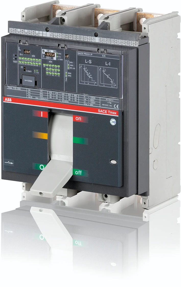 Vermogensautomaat TMAX T7V 800, vaste driepolige uitvoering met frontaansluitingen en hefboombediening en electronische beveiliging in AC PR231/P-LS/I R 800 |
