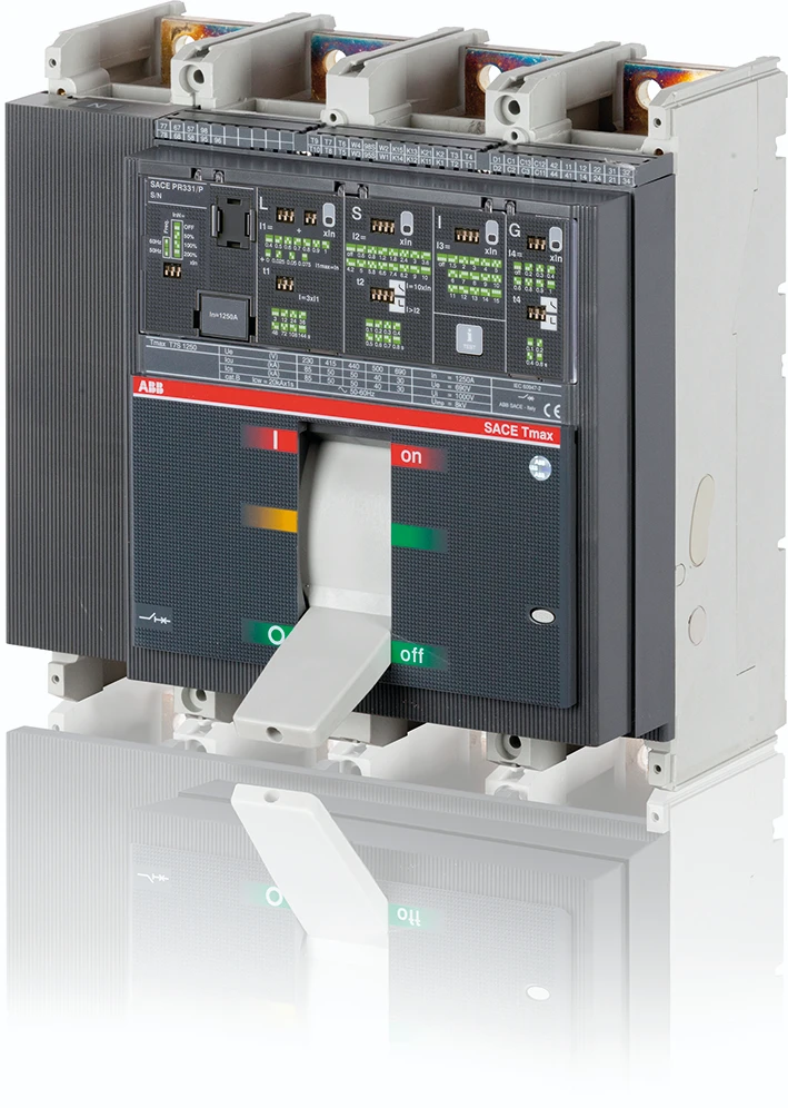 Vermogensautomaat TMAX T7V 800, vaste uitvoering, vierpolig, met frontaansluitingen, hendelbediening en electronische beveiliging in AC PR331/P-LSIG R 800.