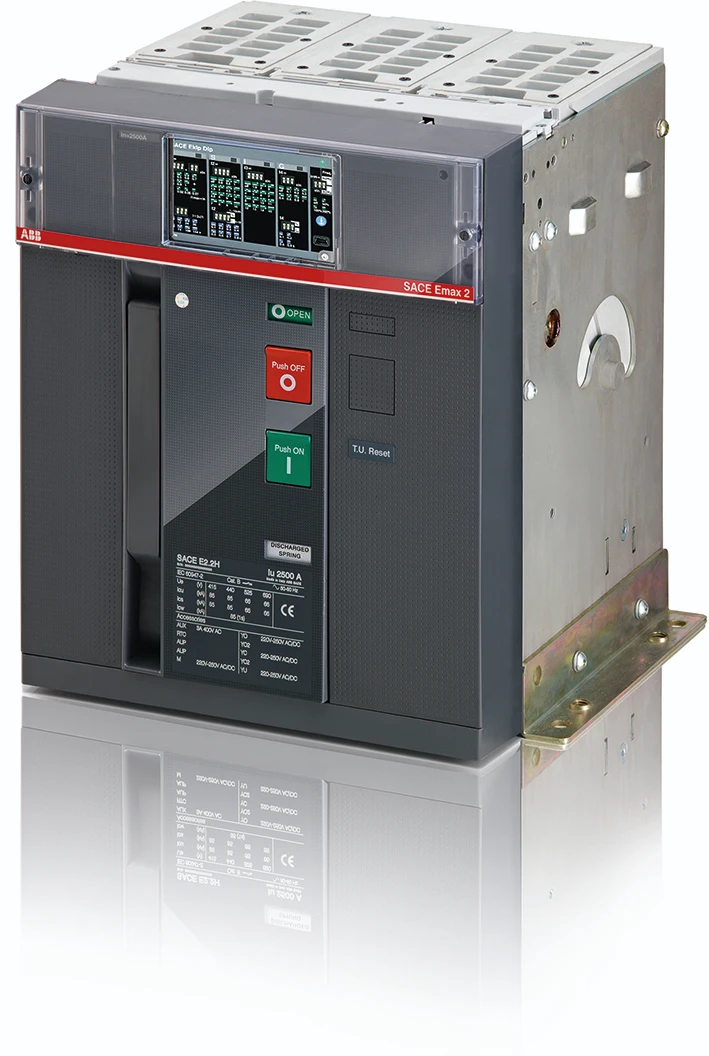 Vermogensautomaat SACE Emax2 E2.2N 1600, vaste uitvoering, driepolig, met achter horizontale aansluitingen en elektronische beveiliging in AC Ekip/DIP-LSIG R 1600, uitgerust met: 4 hulpcontacten en vermogensautomaat in positie open-gesloten. |