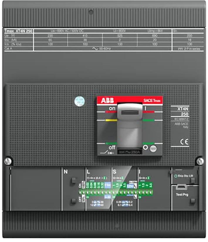 Vermogensschakelaar voor trafo-, generator- en installatiebeveiliging Tmax XT XT4H 160 Ekip Dip LIG In=40A 4 polig vast met vooraansluiting electronische beveiliging