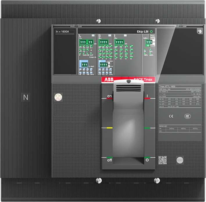 Vermogensautomaat TMAX XT7S 1600, vaste uitvoering, vierpolig, met frontaansluitingen en hendelbediening en elektronische beveiliging in AC EKIP DIP LIG R 1600 |