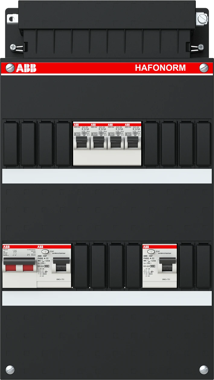 Groepenkast, geassembleerd Hafonorm 4x achter 2x 30mA + HS, 1-f Installatiekast