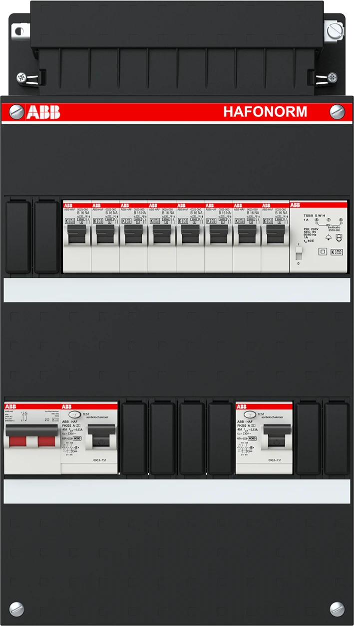 Groepenkast, geassembleerd Hafonorm 8x achter 2x 30mA + T + HS, 1-f Installatiekast