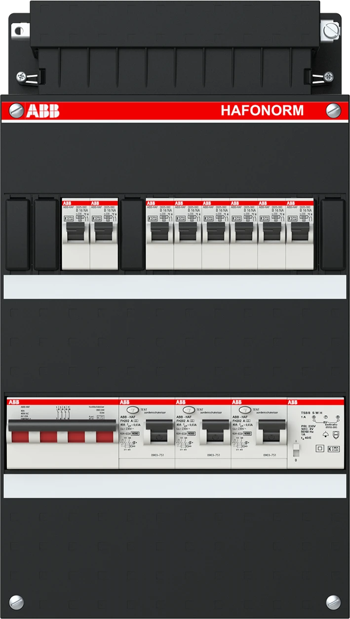 Groepenkast, geassembleerd Hafonorm 8x achter 3x 30mA + T + HS, 3-f Installatiekast