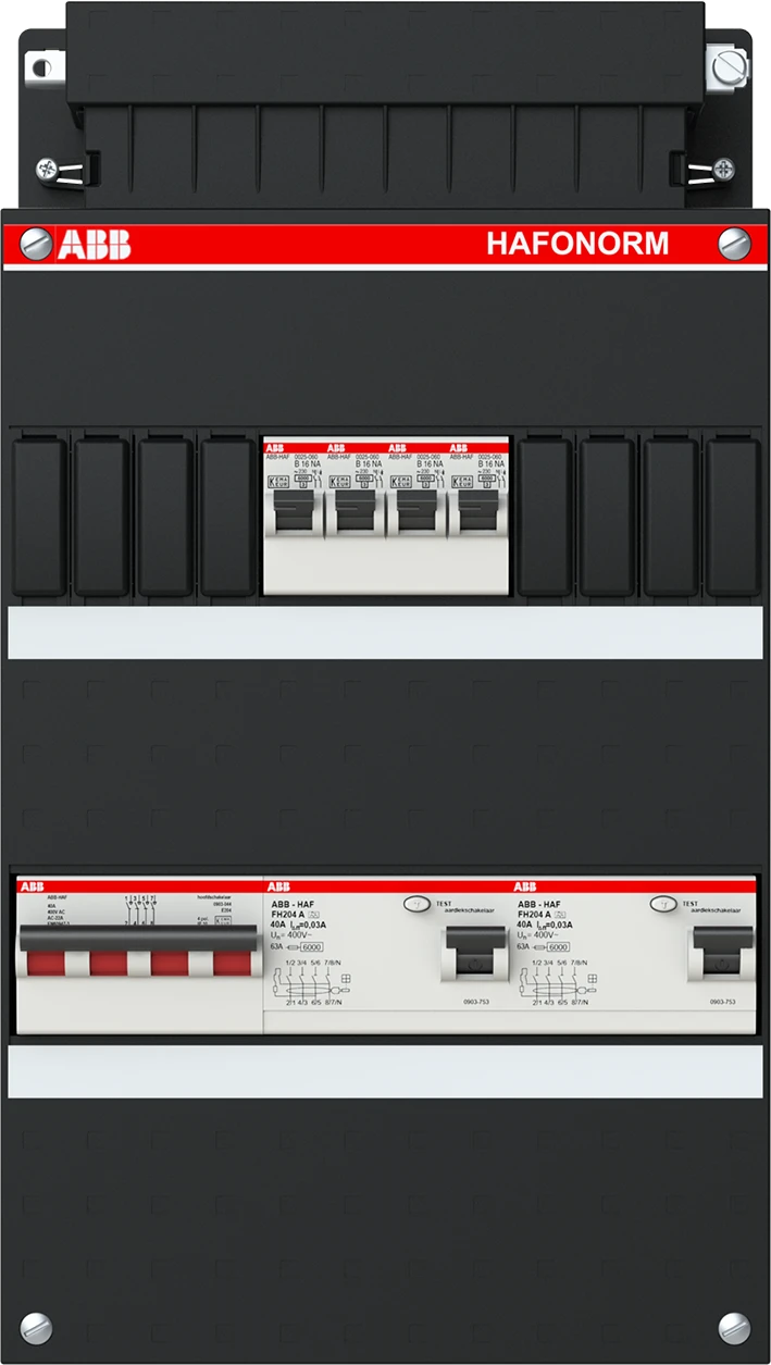 Groepenkast, geassembleerd Hafonorm 4x achter 2x30mA + HS, 3-f Installatiekast