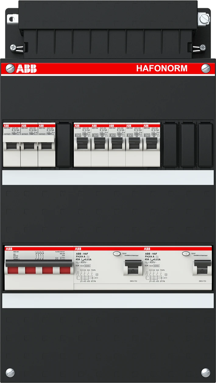 Groepenkast, geassembleerd Hafonorm 5x achter 2x 30mA + K + HS, 3-f Installatiekast