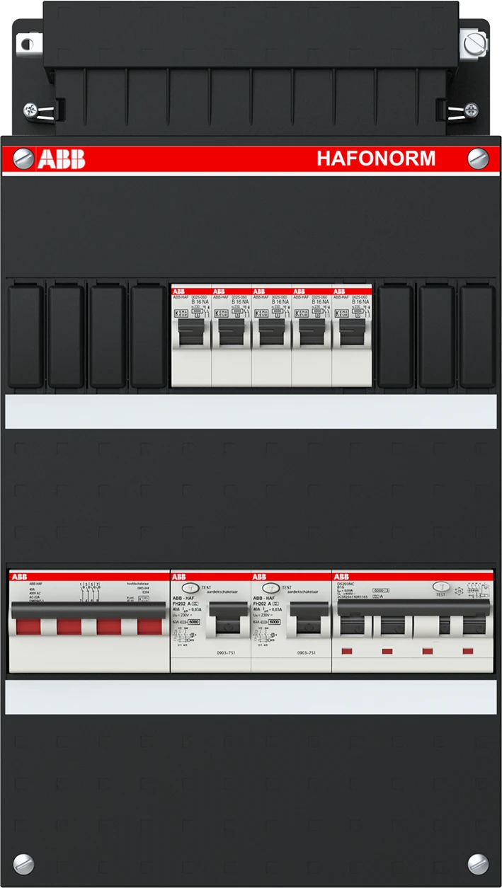 Groepenkast, geassembleerd Hafonorm 5x achter 2x 30mA + HS, + C, 3-fasen