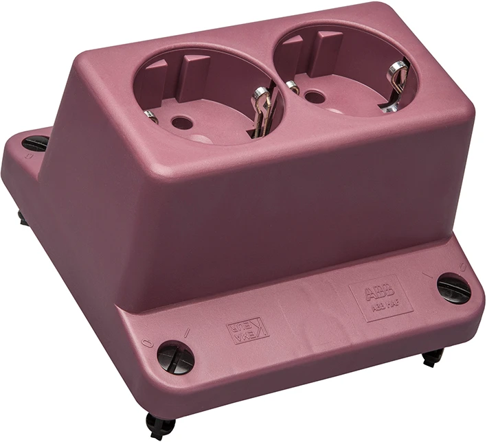 Rood deksel voor de kabeldoos 3640, van gerecycled materiaal, met geïntegreerde dubbele wandcontactdoos met beschermingscontact.