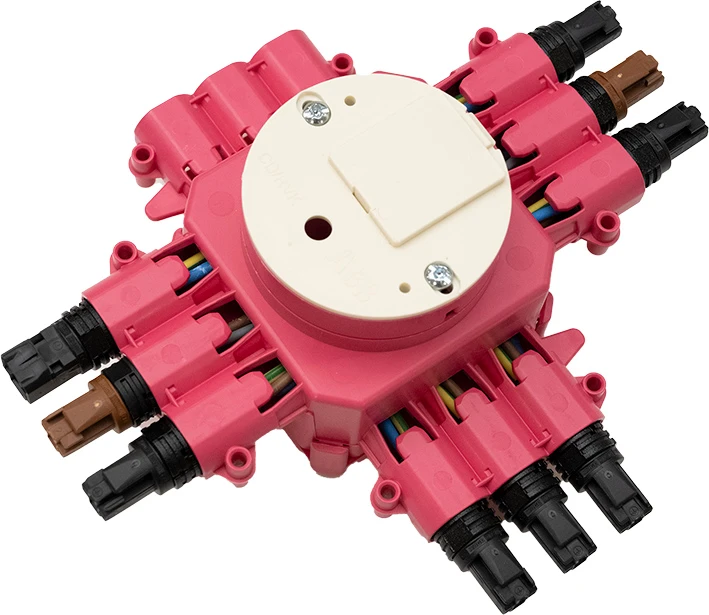 | Omschrijving | Centraaldoos stekerbaar, WAGO RD, 1 x in , 6x uit , wissel schakelaar Brandwerend |